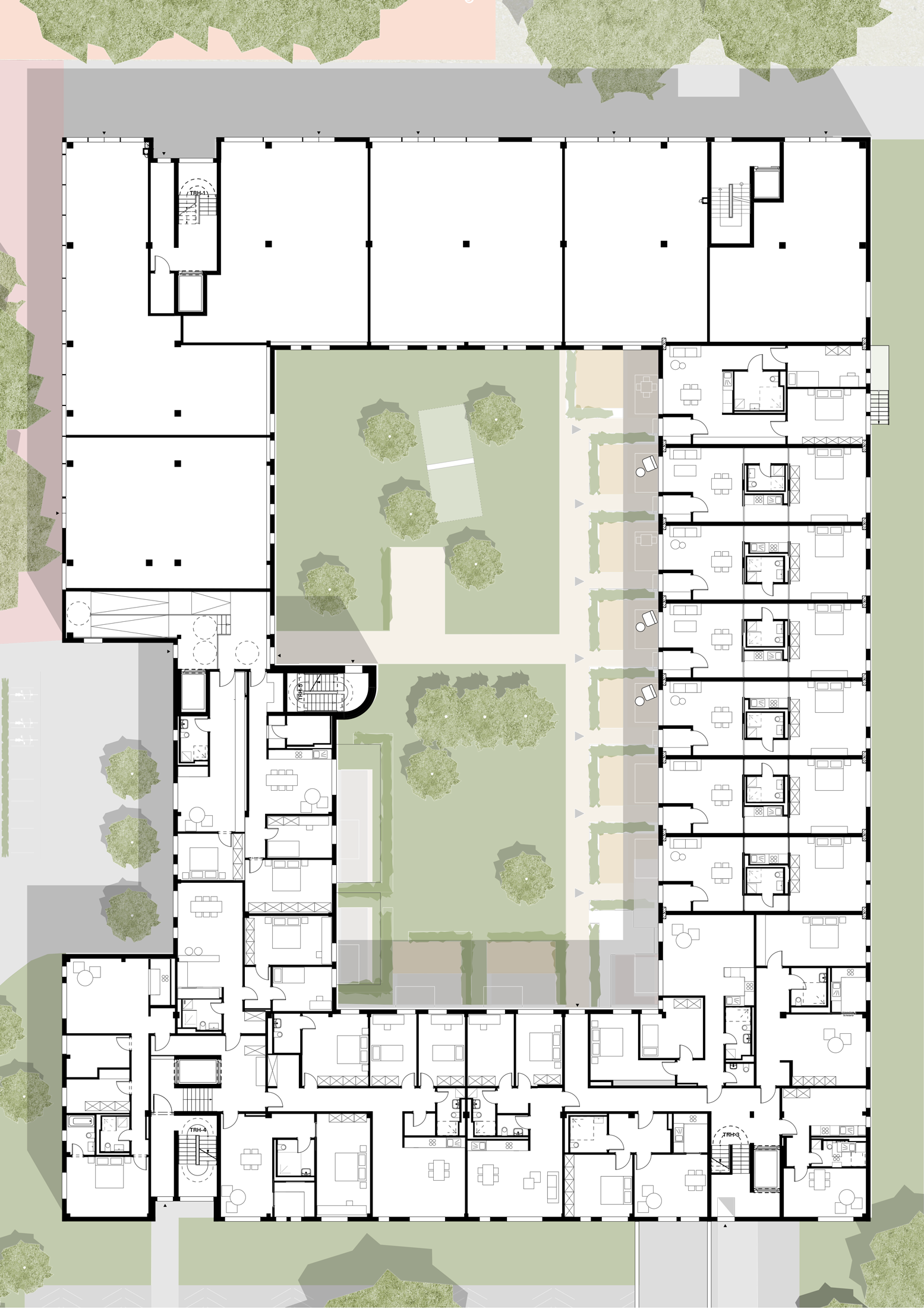 In addition to the two listed buildings, two buildings from the GDR era have been preserved and are being converted and extended - the former GDR customs administration office building - “Platte” - and the associated former “Kantine”.