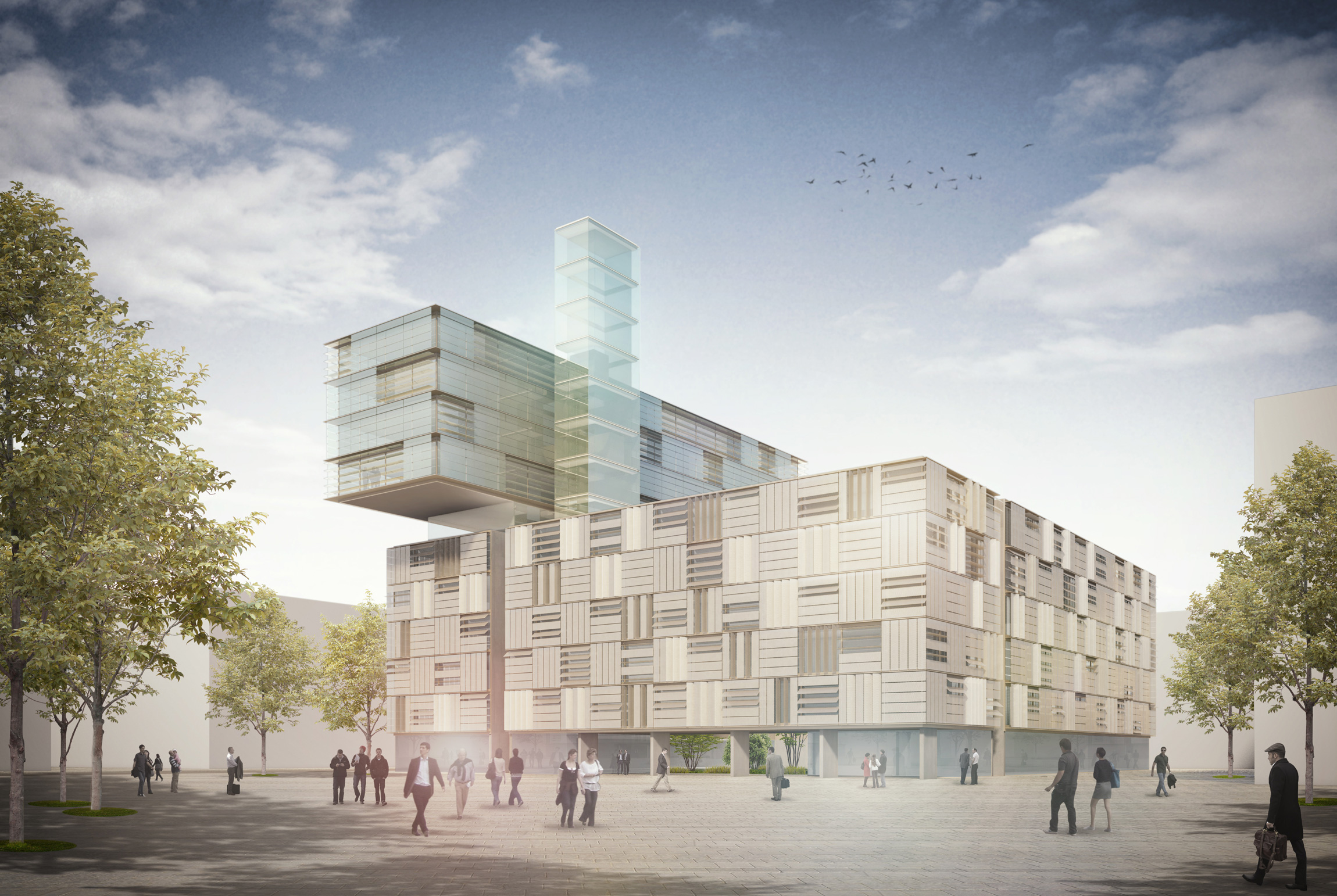 The construction fully complies with the Goldbeck system with load-bearing reinforced concrete or masonry bulkheads, non-load-bearing exterior walls, and prestressed hollow core slabs as ceiling construction with a high degree of prefabrication and minimized material usage: concrete minus 50%, steel minus 70%. The underground parking garage is planned as a monolithic reinforced concrete construction. The exterior walls are constructed with highly insulated bricks or aerated concrete and covered with a patchwork of different facade materials: robust bricks on the ground floor and first floor, plaster and pre-greyed wood cladding (rear-ventilated) on the upper floors. A casual mix that facilitates the ideal, individual appropriation by the residents.