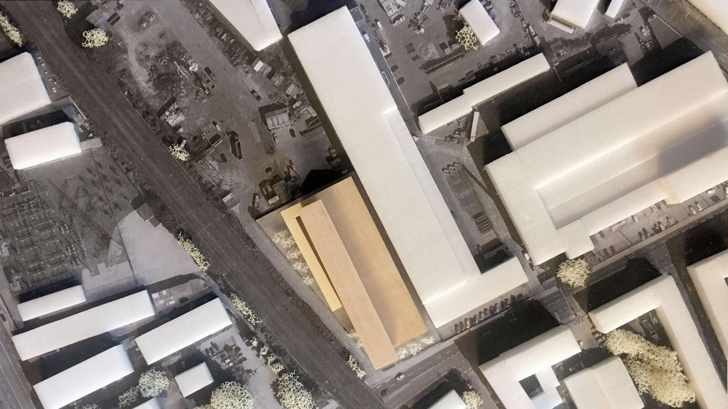 The north courtyard has a basement – with retail space and additional commercial use (facing the public streets) on the ground floor and an underground car park in the basement that covers all parking requirements. The south courtyard has no basement and is completely open to drainage. All roofs are sloped – a significant roof landscape with greenery and PV, a fifth façade, robust and with secure drainage. This creates an ObenLand, shaping this location. The buildings could be realized in two construction phases or divided into real parts.