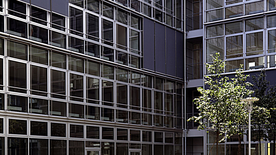 The buildings were all constructed using in-situ concrete with round columns and flat slabs. The floor plans are flexible and can be divided into units starting from 150 square meters. All surface water is collected and directed into ponds located in the three courtyards.