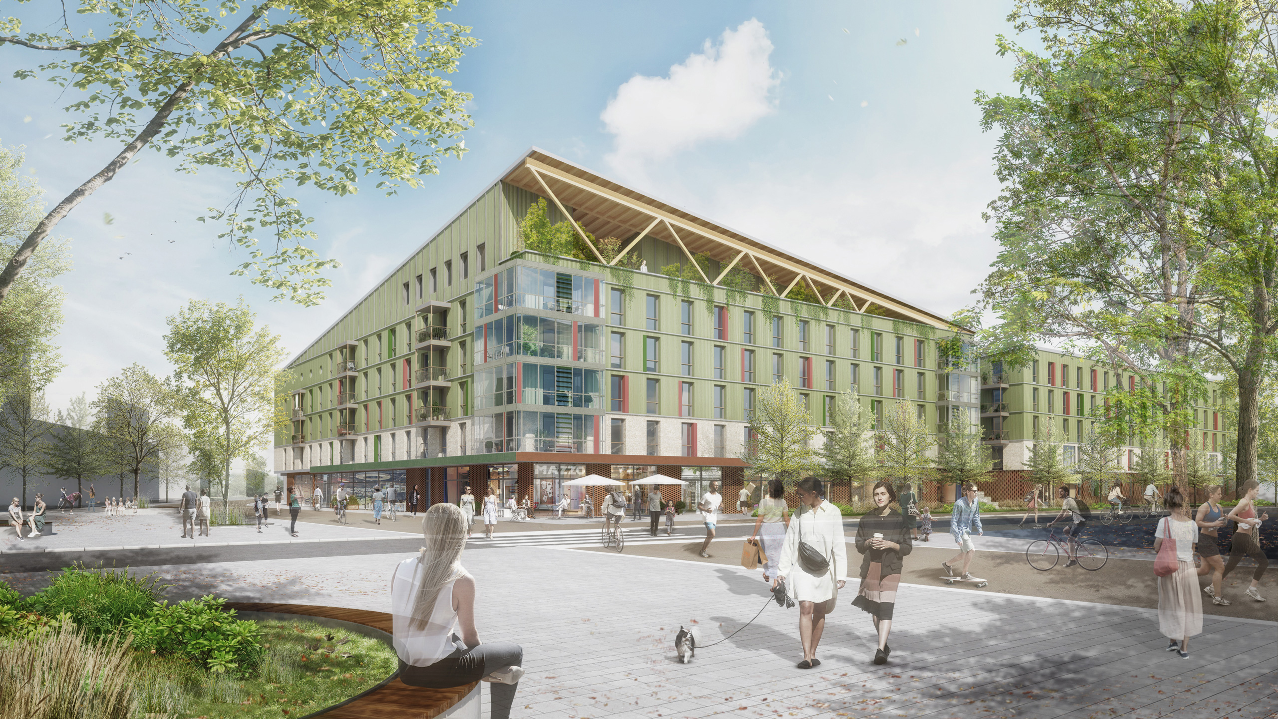 The design puts cyclists and pedestrians at the forefront and hides cars underground. Paths are perceived as play areas. To support the bike-friendly city, parking spaces for bicycles, including cargo bikes, are distributed throughout the entire area.