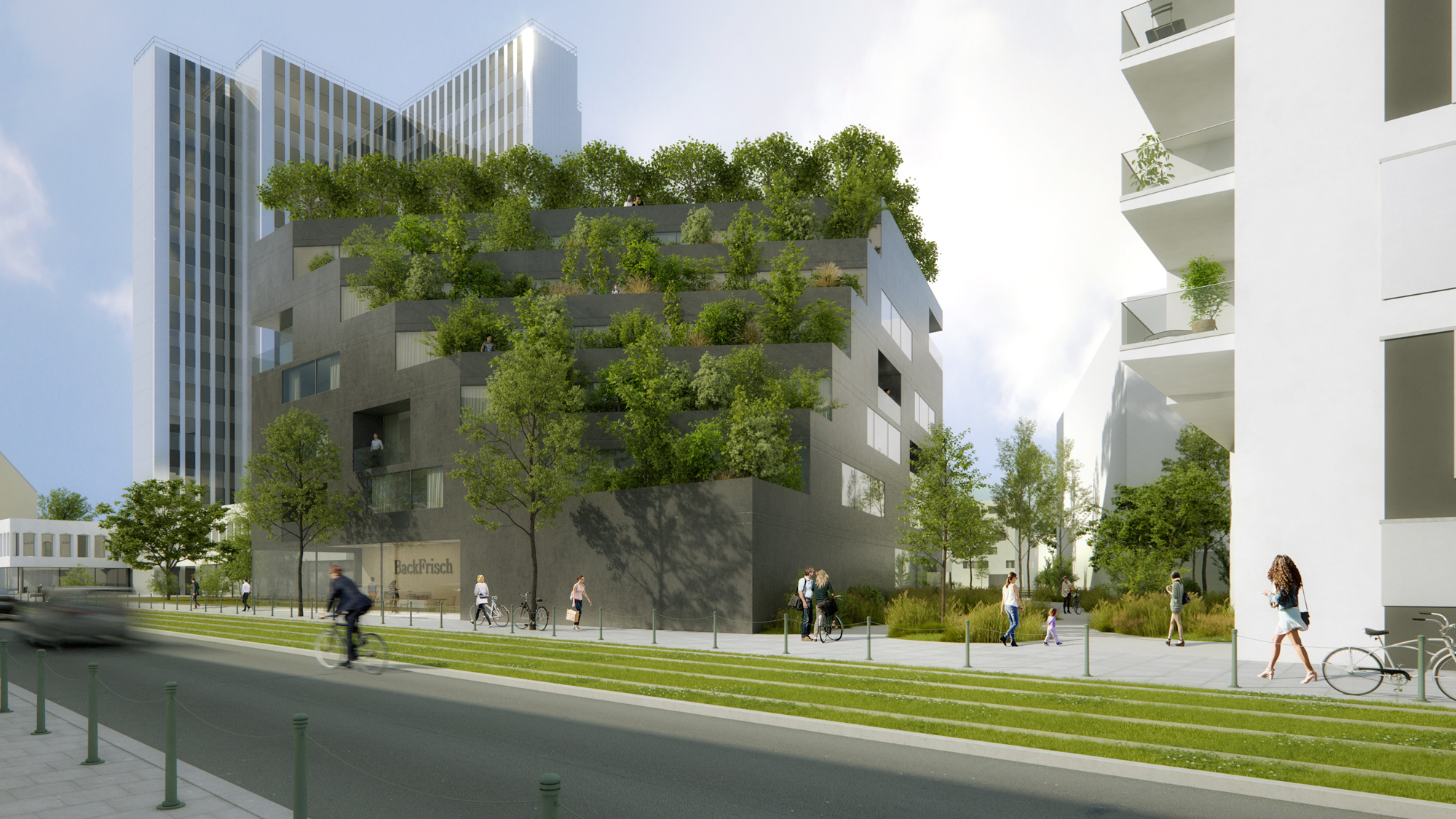 Der zweite Baukörper, „LorettoLoretto“ artikuliert die südliche Kante des künftigen Stadtplatzes auf dem Nachbargrundstück – er wird so zu einem Nachbarschaftsangebot. Im Erdgeschoss entstehen gewerbliche Nutzflächen - möglichst mit öffentlichen Angeboten wie Restaurants, Cafés o.ä. Darüber besitzt das Gebäude sechs Vollgeschosse mit reiner Wohnnutzung und ein mit Dachgärten, die zum Teil einzelnen Wohneinheiten direkt zugeordnet sind (Familien) und zum anderen der Hausgemeinschaft zur Verfügung stehen.